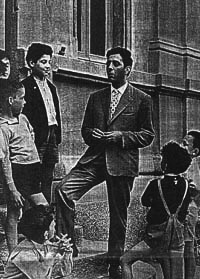 5. Lucio Mastronardi parla coi bambini della scuola elementare in cui insegna Settimo Giorno, Milano 12 giugno 1962